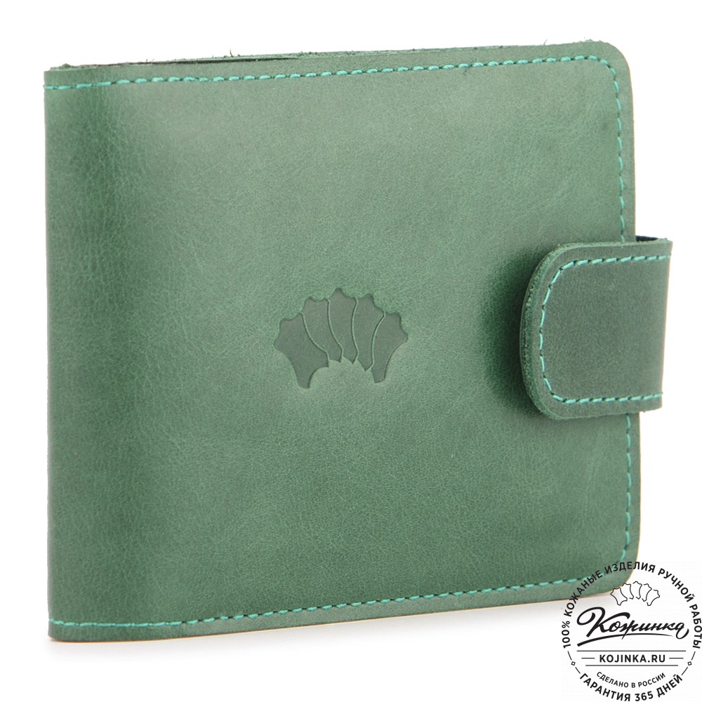 Кожаное портмоне Италия (зеленое) - отличный вариант небольшого бумажника с отделениями для карт и для мелочи.