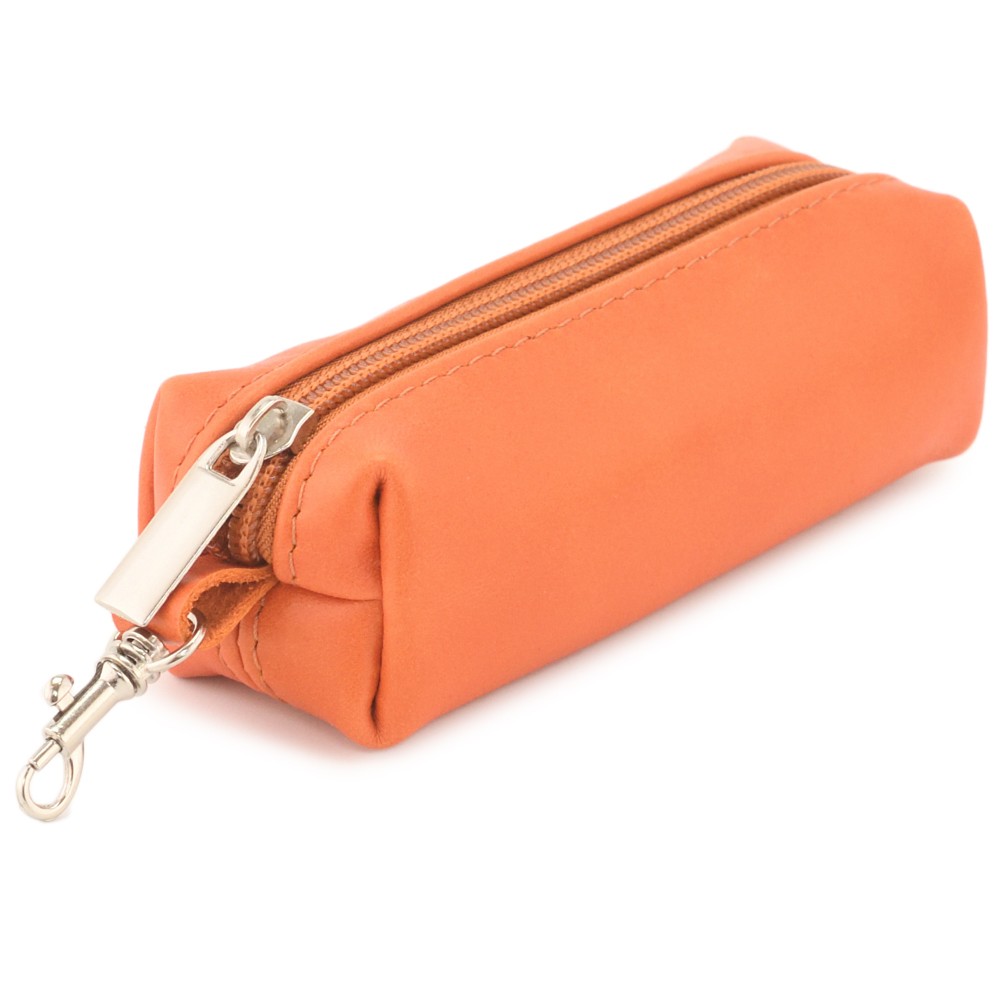 Внутри кольцо для ключей на цепочке, что обеспечивает дополнительное удобство использования. Закрывается ключница на молнию, снаружи есть небольшой карабин.