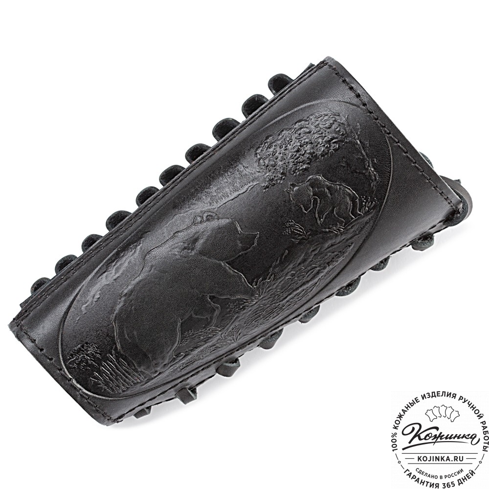 С одной стороны выполнено тиснение на охотничью тему.