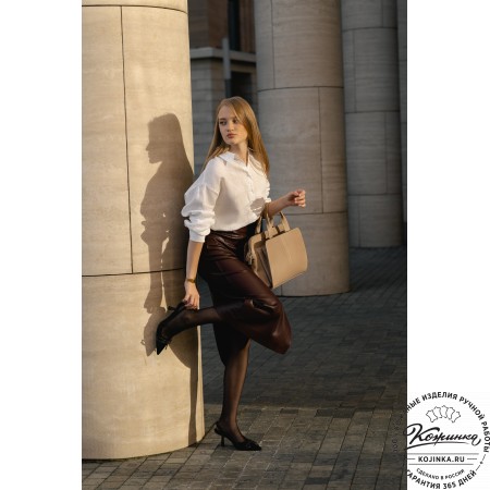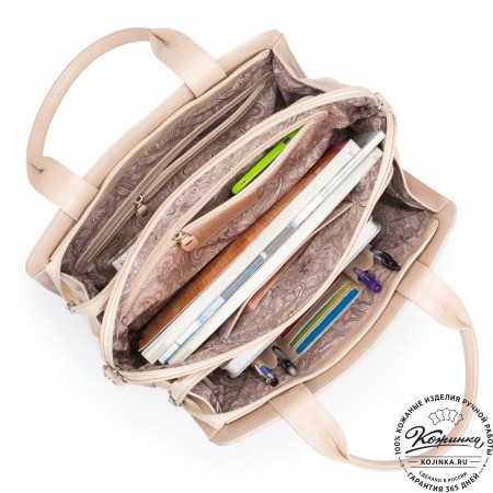 На фото модели представлена сумка "Бэлла" бежевая гладкая кожа.