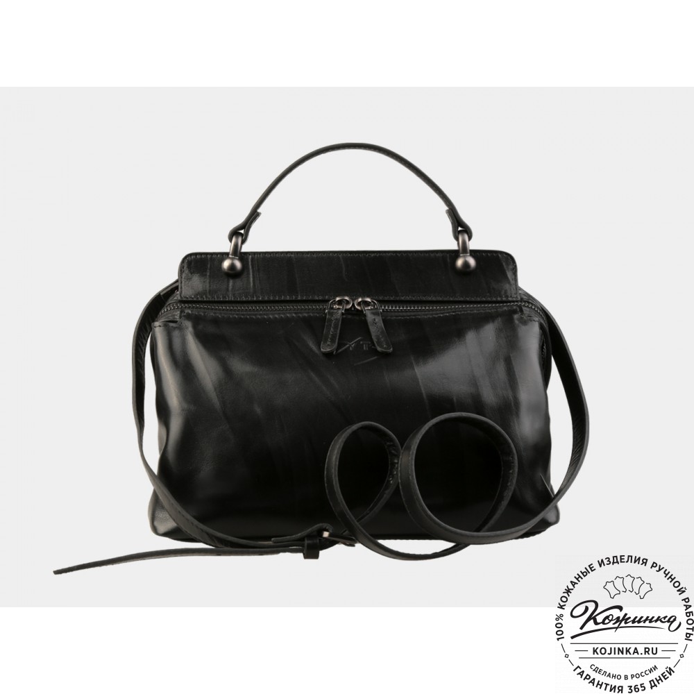Женская кожаная сумка "Орнелла" (чёрная) – стильная сумочка с интересным дизайном, модный аксессуар на каждый день!