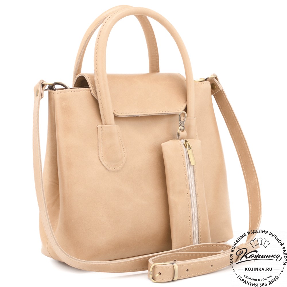 Женская кожаная сумка "Ванесса" (бежевая) – элегантная и практичная модель с хорошо продуманной внутренней организацией.