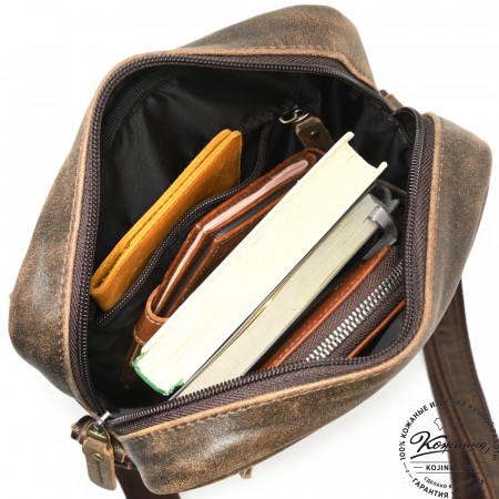 Кожаная нагрудная сумка "Стивен" (коричневая наппа) –это уникальная модель 2 в 1, которую можно носить и как нагрудную сумку, и как сумку-планшет. Идеально подойдёт мужчинам, которые любят, чтобы их руки оставались свободными!
