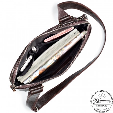 Кожаная сумка "Говард" (чёрная) - интересная, легкая и стильная сумка для людей с активным образом жизни. Универсальная модель унисекс, которая подойдет к любому стилю и гардеробу!