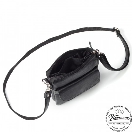 На лицевой стороне сумки расположен большой накладной карман на молнии, а за ним еще один кармашек, так же на молнии. Внутри большого кармана есть кармашки для карт, ручек и телефона. Очень удобно!