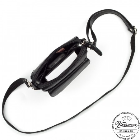 Сумку можно носить в руках за ручку, а можно на длинном кожаном ремне через плечо. Ремень съемный, регулируется по длине, крепится по бокам на небольшие карабины. Свободный конец ремня фиксируется кожаным кольцом.