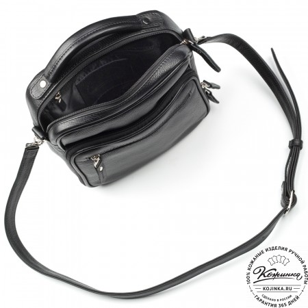 Плечевой ремень регулируется по длине пряжкой. Свободный конец ремня аккуратно фиксируется кожаным кольцом.