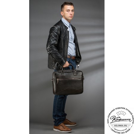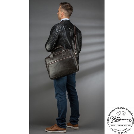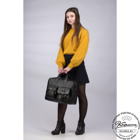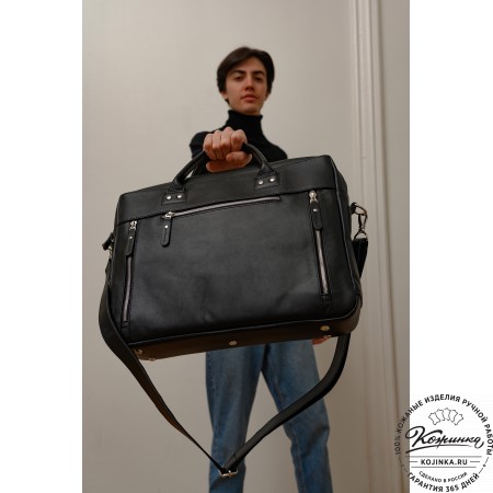 На модели представлен портфель "Сталкер" в цвете черный антик.