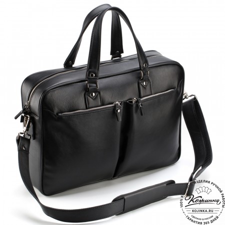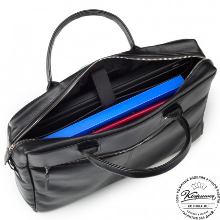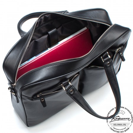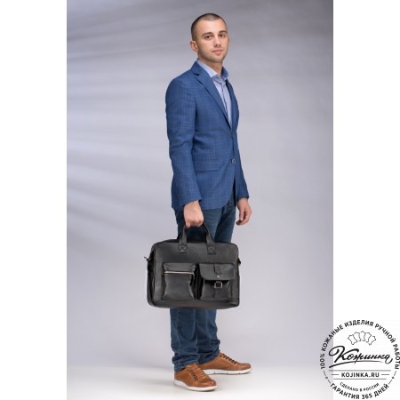 Кожаный портфель "Сталкер" (черный) – вместительный деловой портфель из прочной натуральной кожи.