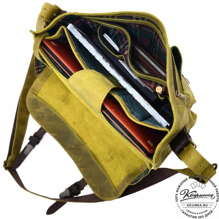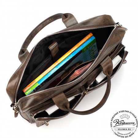 Портфель изготовлен из высококачественной натуральной кожи и прочной фурнитуры.