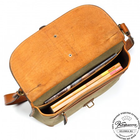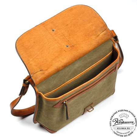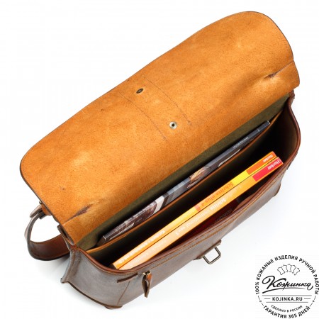 Закрывается портфель клапаном с двумя портфельными пряжками.