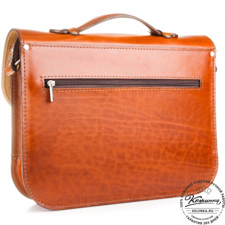 Портфель из 100% натуральной толстой кожи, закрывается на удобные петли. Внутри одно просторное отделение. На задней стенке основного отделения расположен карман на молнии и дополнительный карман без молнии (под планшет). Удобные кожаные "ушки" по боковым стенкам основного отделения. Передний накладной карман имеет скрытые малые кармашки на молнии и дополнительные для визиток.