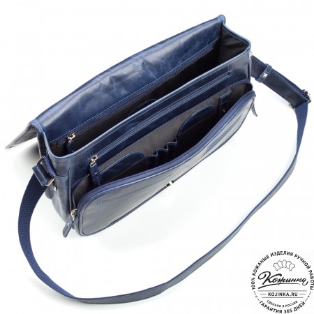 Портфель из 100% натуральной толстой кожи, закрывается на удобные классические пряжки. Внутри 2 удобных отдела разделённых перегородкой пополам. В перегородке имеется карман на молнии и удобные кожаные кармашки для ручек и мелких вещей. На передней стенке имеется объёмный накладной карман для мелких вещей.