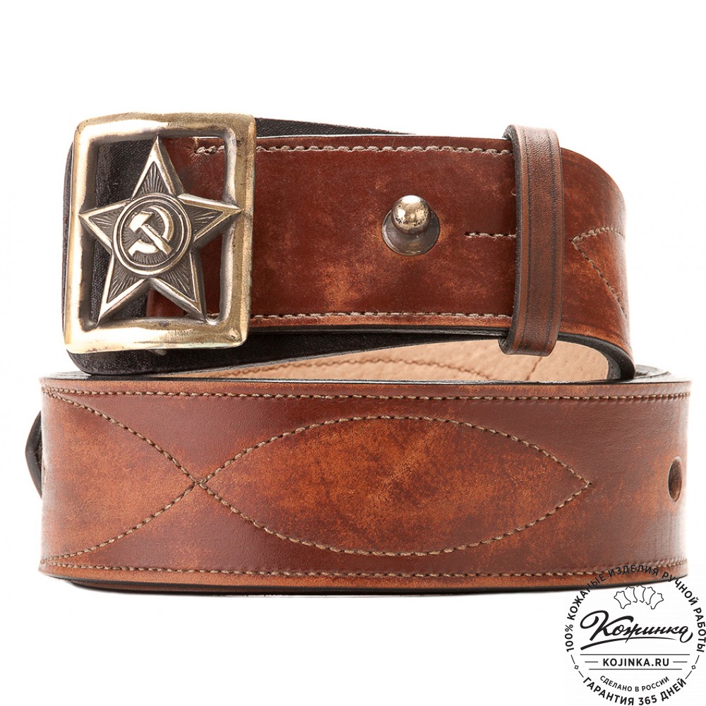 Толстая грубая шорно-седельная кожа высокого качества, удобная пряжка из латуни, лаконичная прошивка по всей длине ремня.