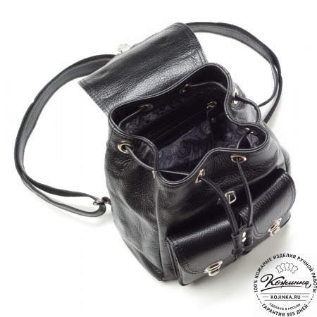 Рюкзак выглядит компактно, но при этом он достаточно вместительный. Внутри одно просторное отделение и карман на молнии для ценных вещей. Подкладка выполнена из прочной ткани с красивым узором.