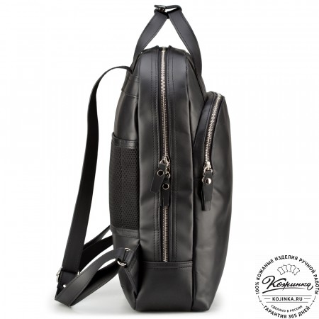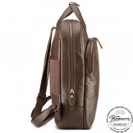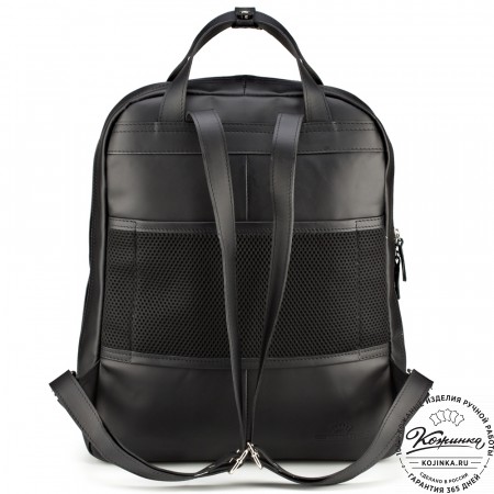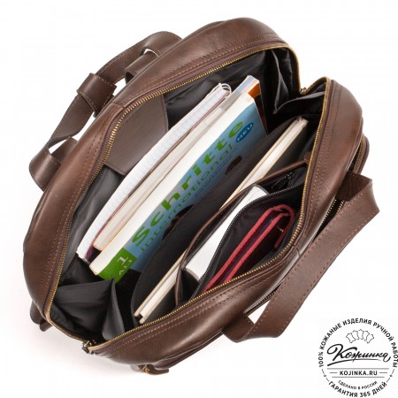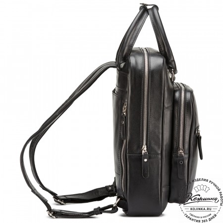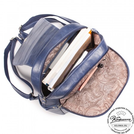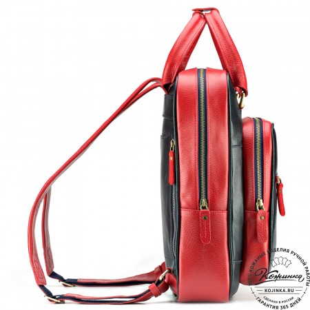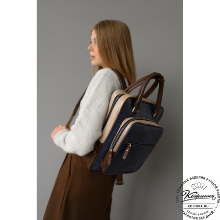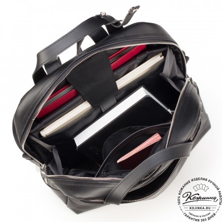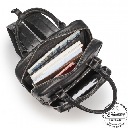Кожаные лямки регулируются по длине. Удобная длинная ручка позволяет носить рюкзак в руках.