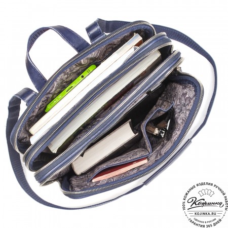 Рюкзак изготовлен специально под формат А4. В основном отделении прекрасно помещаются папка с документами, книги и журналы, ноутбук или планшет, для которых предусмотрена специальная секция с мягкой стенкой.