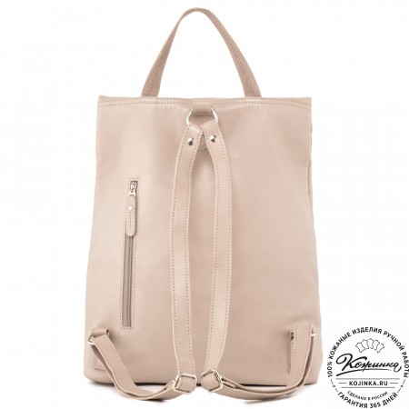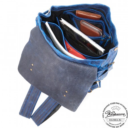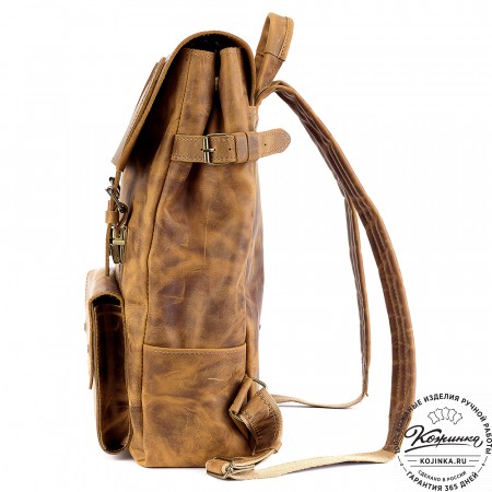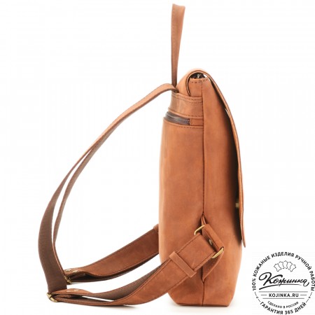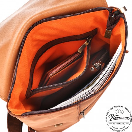 Лямки рюкзака из кожи, усилены стропой, регулируются по длине. Лямки можно соединить вмести молнией и удобно носить рюкзак на одно плечо.