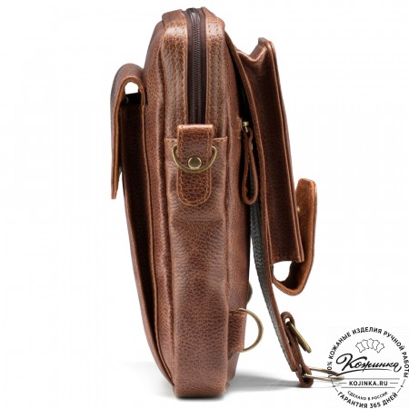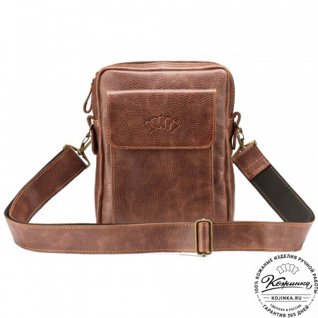 Кожаная сумка "Дуглас" (коричневая) – небольшая стильная сумка через плечо из натуральной кожи.