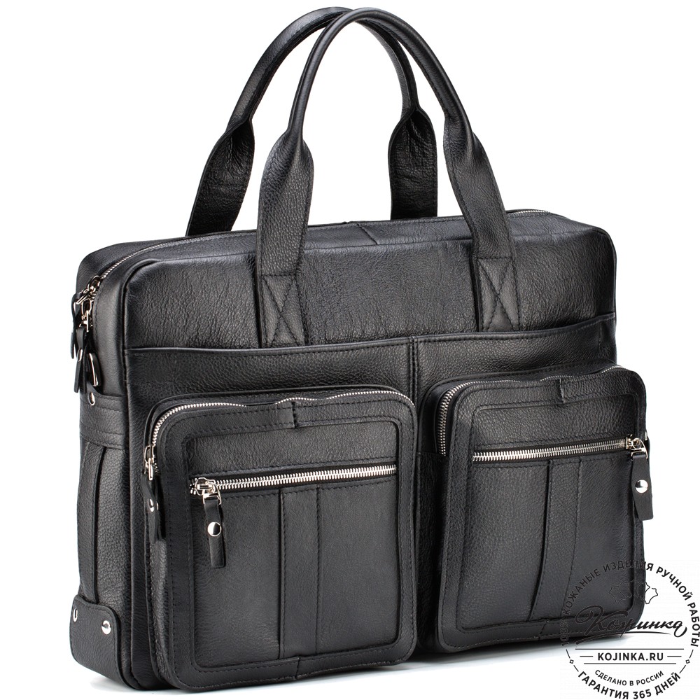 Кожаная деловая сумка "Гильермо" (чёрная) - практичная мужская сумка на каждый день из прочной натуральной кожи.