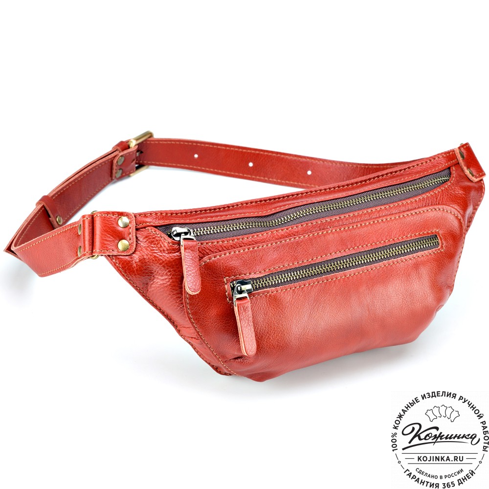 Кожаная сумка на пояс "Рики" (рыжая) – стильная и удобная набедренная сумочка из мягкой натуральной кожи.