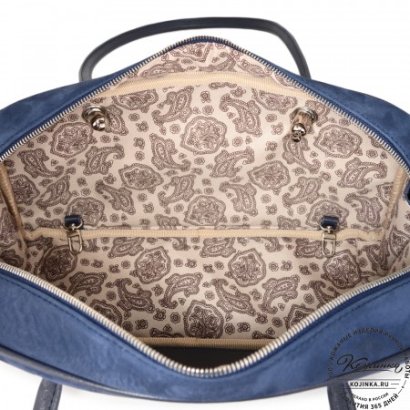 Внутри прочная подкладка из ткани и большой карман на молнии.
