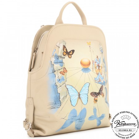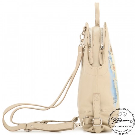 На фотографиях на модели и в интерьере представлены варианты росписи на рюкзаке "Джорджия".