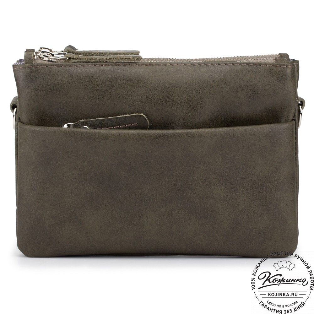 Женская кожаная сумка "Хельга" (хаки гладкая кожа) – маленькая аккуратная сумочка с двумя отделениями.