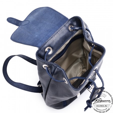 Рюкзак выглядит компактно, но при этом он достаточно вместительный. Внутри одно просторное отделение и карман на молнии для ценных вещей. Подкладка выполнена из прочной ткани с красивым узором.