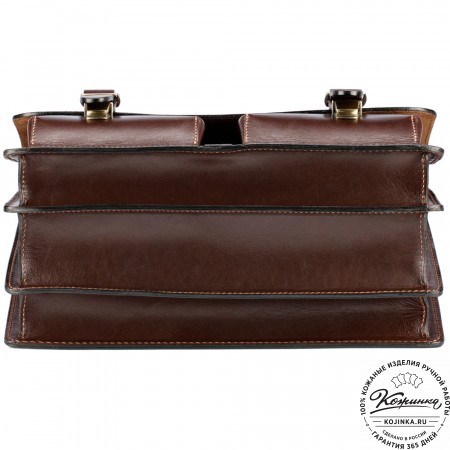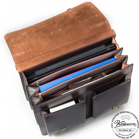 Портфель выполнен из толстой 100% натуральной кожи и хорошо держит форму.