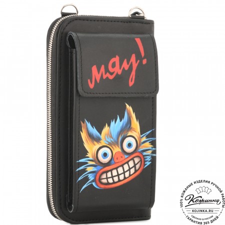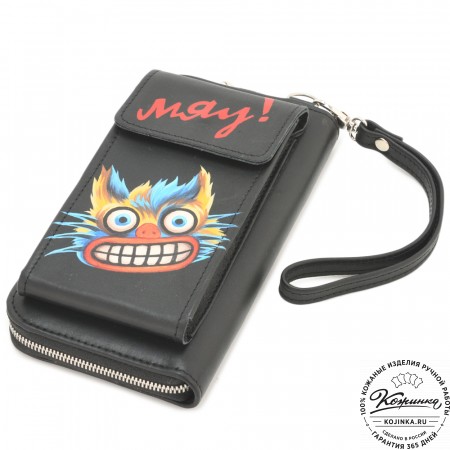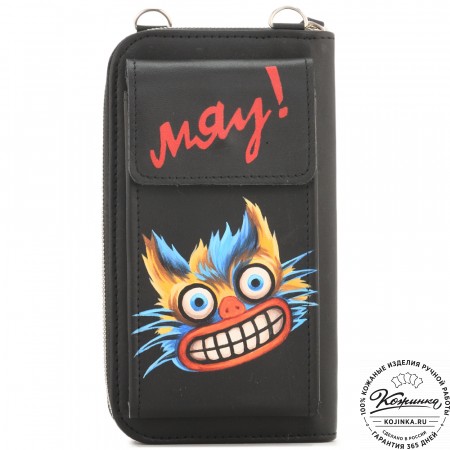 Кожаный клатч "Чукотка" "Чешир с часами" (синий) – многофункциональная модель-трансформер!